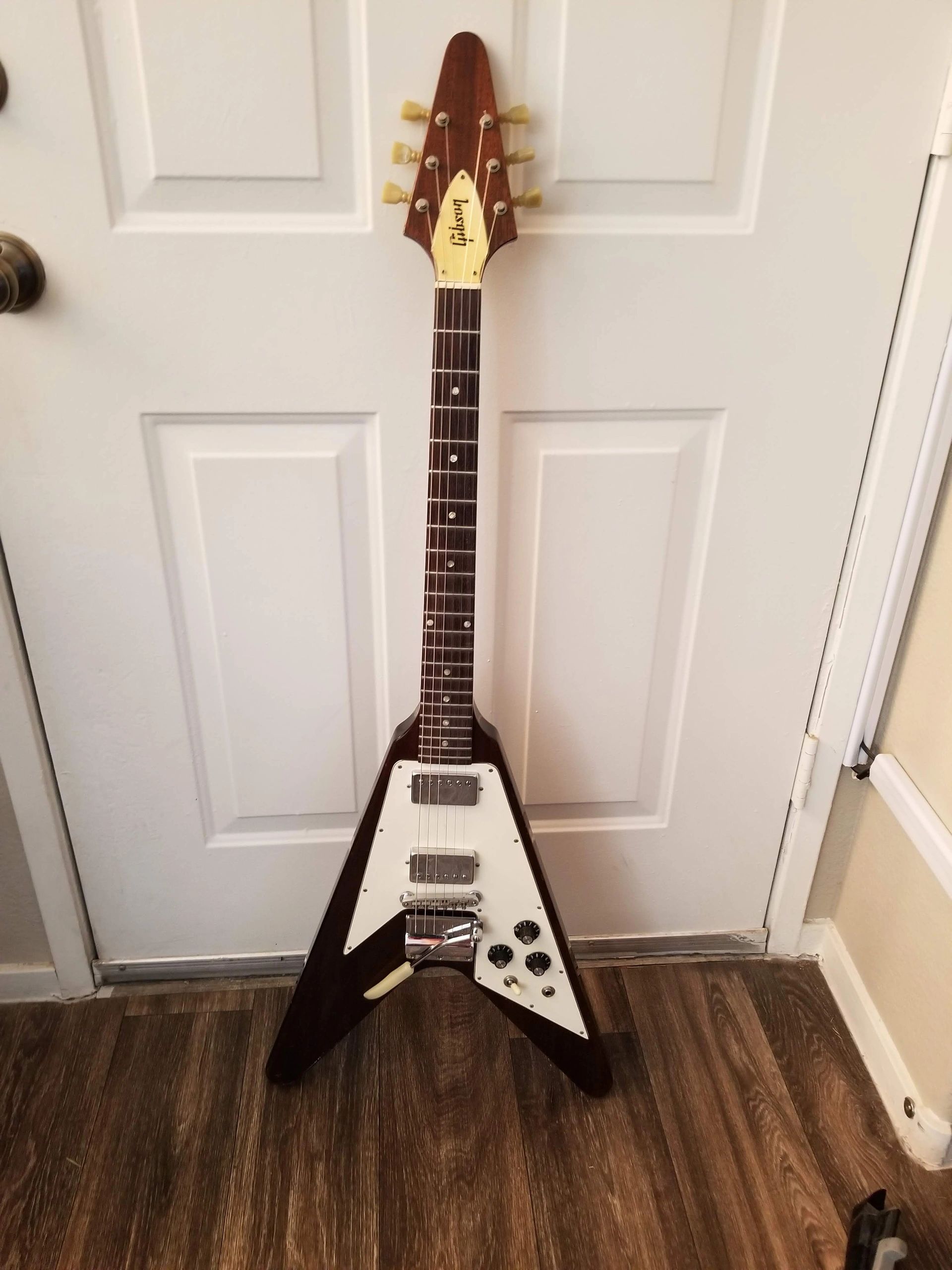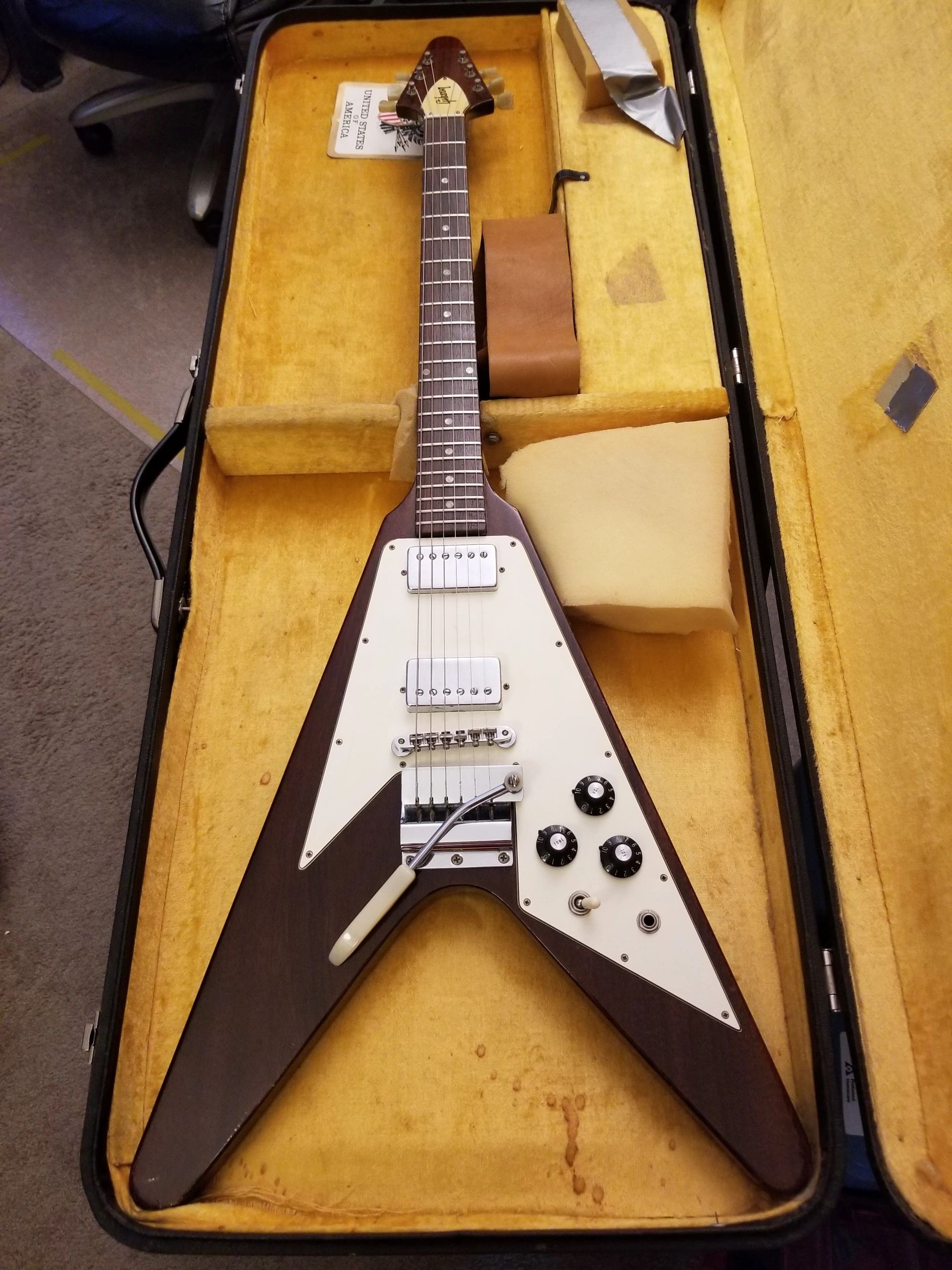 1969 Gibson Flying V Walnut, one of 35 ever made.Best info on Flying V's anywhere on the web here: https://1967-flyingv.weebly.com And probably one of the largest V collections in existence.